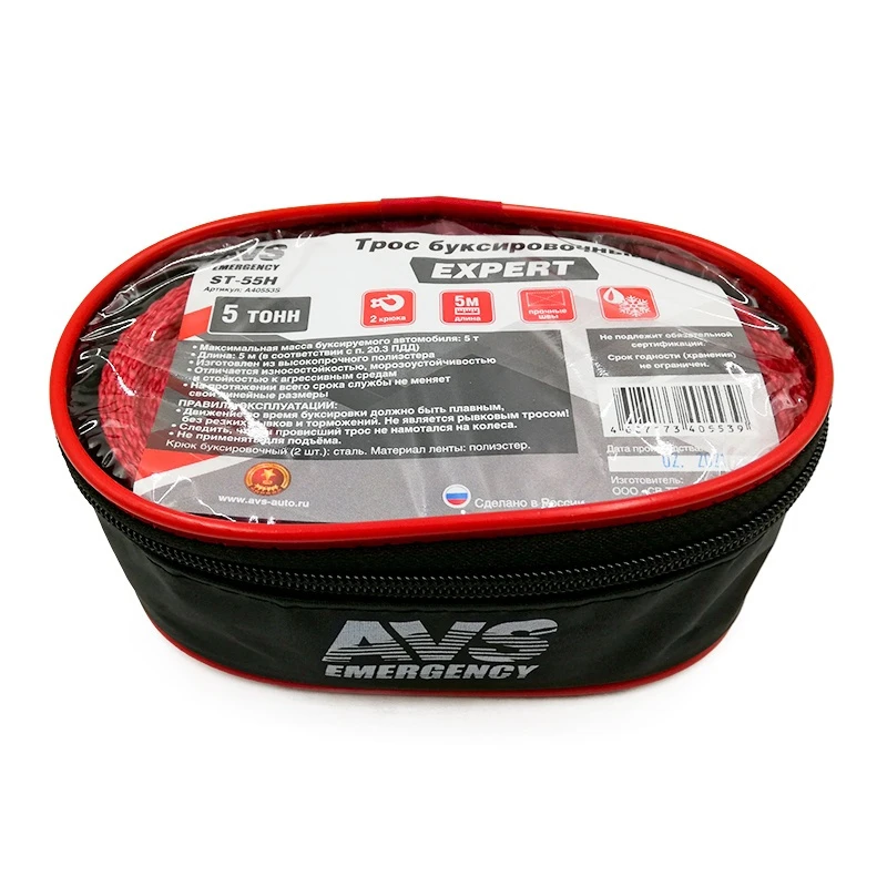 Буксировочный трос предназначен для буксировки автомобилей и других транспортных средств. Максимальная масса буксируемого автомобиля составляет 5 тонн. Длина троса составляет 5 метров, что соответствует пункту 20.3 Правил дорожного движения. Трос изготовлен из высокопрочного полиэстера, обладает износостойкостью, морозоустойчивостью и стойкостью к агрессивным средам. В течение всего срока службы трос сохраняет свои линейные размеры.