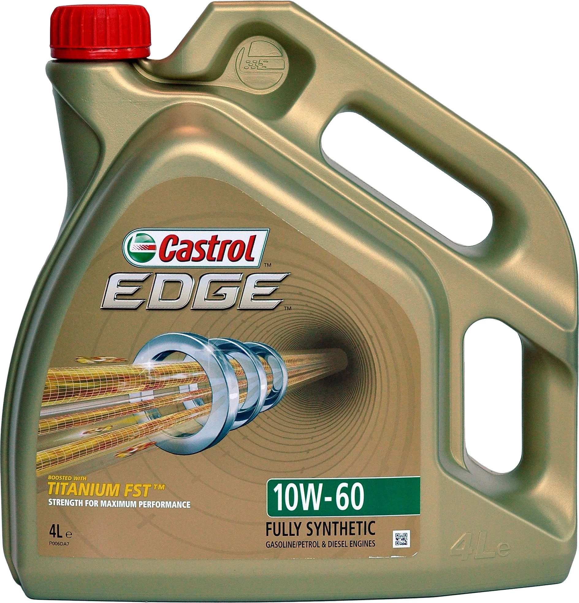 Моторное масло Castrol EDGE 10W-60 Полностью синтетическое моторное масло Castrol EDGE произведено с использованием новейшей технологии TITANIUM FST™, придающей масляной пленке дополнительную силу и прочность благодаря соединениям титана. TITANIUM FST™ радикально меняет поведение масла в условиях экстремальных нагрузок, формируя дополнительный ударопоглащающий слой. Испытания подтвердили, что TITANIUM FST™ в 2 раза увеличивает прочность пленки, предотвращая ее разрыв и снижая трение для максимальной производительности двигателя. Castrol EDGE 10W-60 предназначено для бензиновых и дизельных двигателей автомобилей, где производитель рекомендует моторные масла класса вязкости SAE 10W-60 спецификаций ACEA A3/B3, A3/B4, API SN/CF или более ранних.