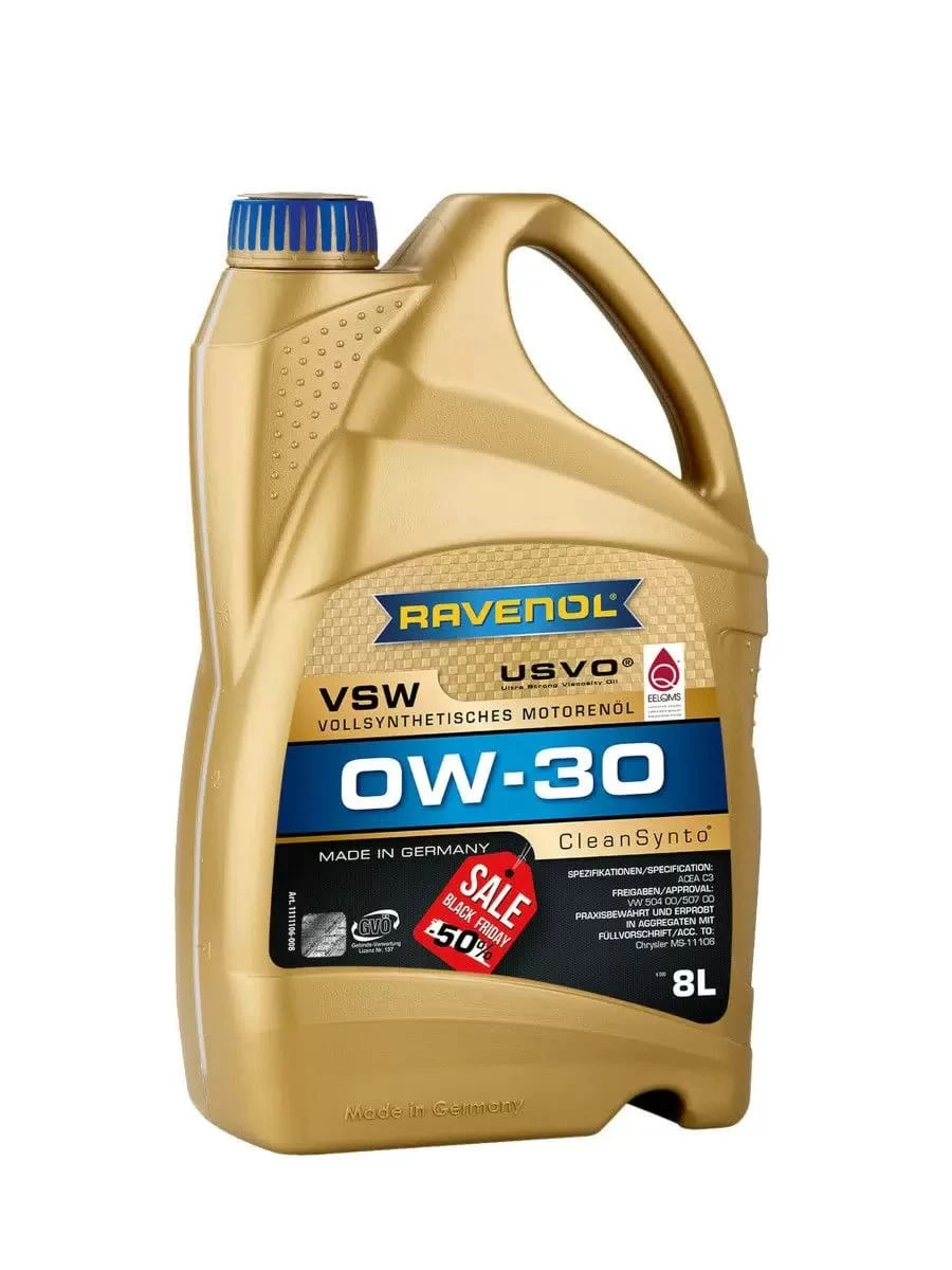 RAVENOL VSW 0W-30 - полностью синтетическое легкотекучее моторное масло, разработанное по технологии CleanSynto® для бензиновых и дизельных двигателей с и без турбонаддува и непосредственным впрыском топлива легковых автомобилей. Минимизирует трение, износ, позволяет экономить топливо, вследствие чего уменьшается эмиссия вредных веществ в атмосферу. Удлиненные интервалы замены согласно требованиям автопроизводителей.