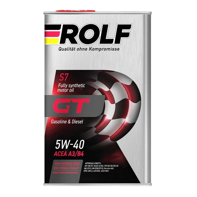 Премиальное полностью синтетическое моторное масло с комбинацией высококачественных базовых компонентов с новейшими присадочными технологиями обеспечивает быстрый и легкий запуск двигателя при самых низких температурах, превосходную защиту двигателя от износа и увеличенный интервал замены. Предотвращает образование отложений в масляной системе, обеспечивает чистоту двигателя. Синтетическое масло ROLF GT 5W-40 имеет высшую спецификацию моторных масел для бензиновых двигателей легковых автомобилей - API SN.
