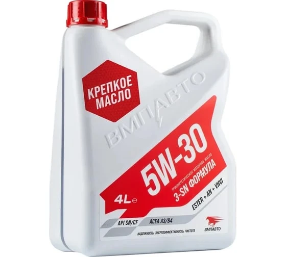 - SN-пакет присадок, разработанный ВМПАВТО обеспечивает защиту двигателя от износа, стабильные характеристики масла и чистоту деталей двигателя - всего через три замены двигатель будет очищен от лаковых отложений.