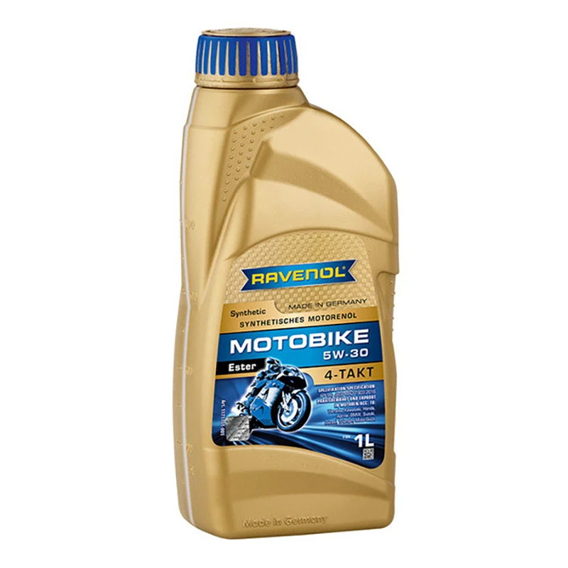 RAVENOL Motobike 4-T Ester 5W-30 – синтетическое моторное масло высшего качества, изготовленное в Германии на основе эстерового базового масла.