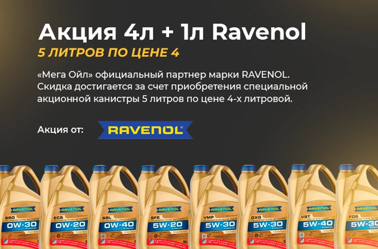 При покупке в магазине масла Ravenol Вы получаете 5л масла по цене 4. Период проведения промо-акции: до окончания промонаборов.